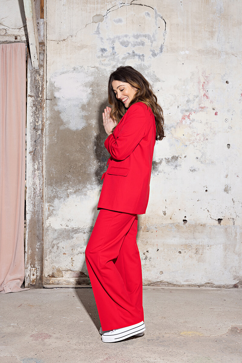 This blazer is made from a soft, smooth recycled viscose-blend fabric.